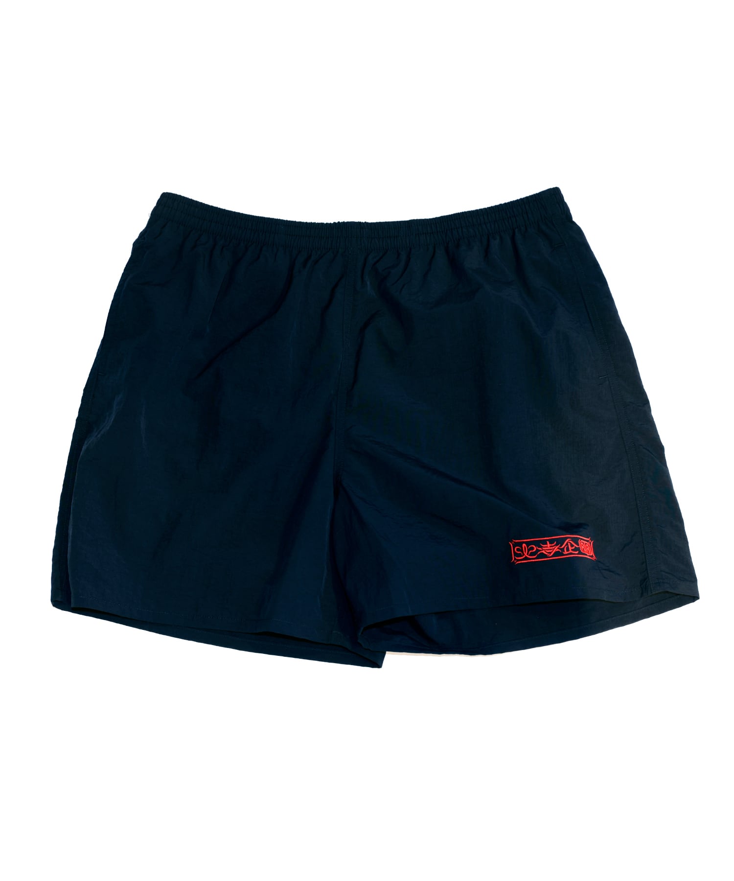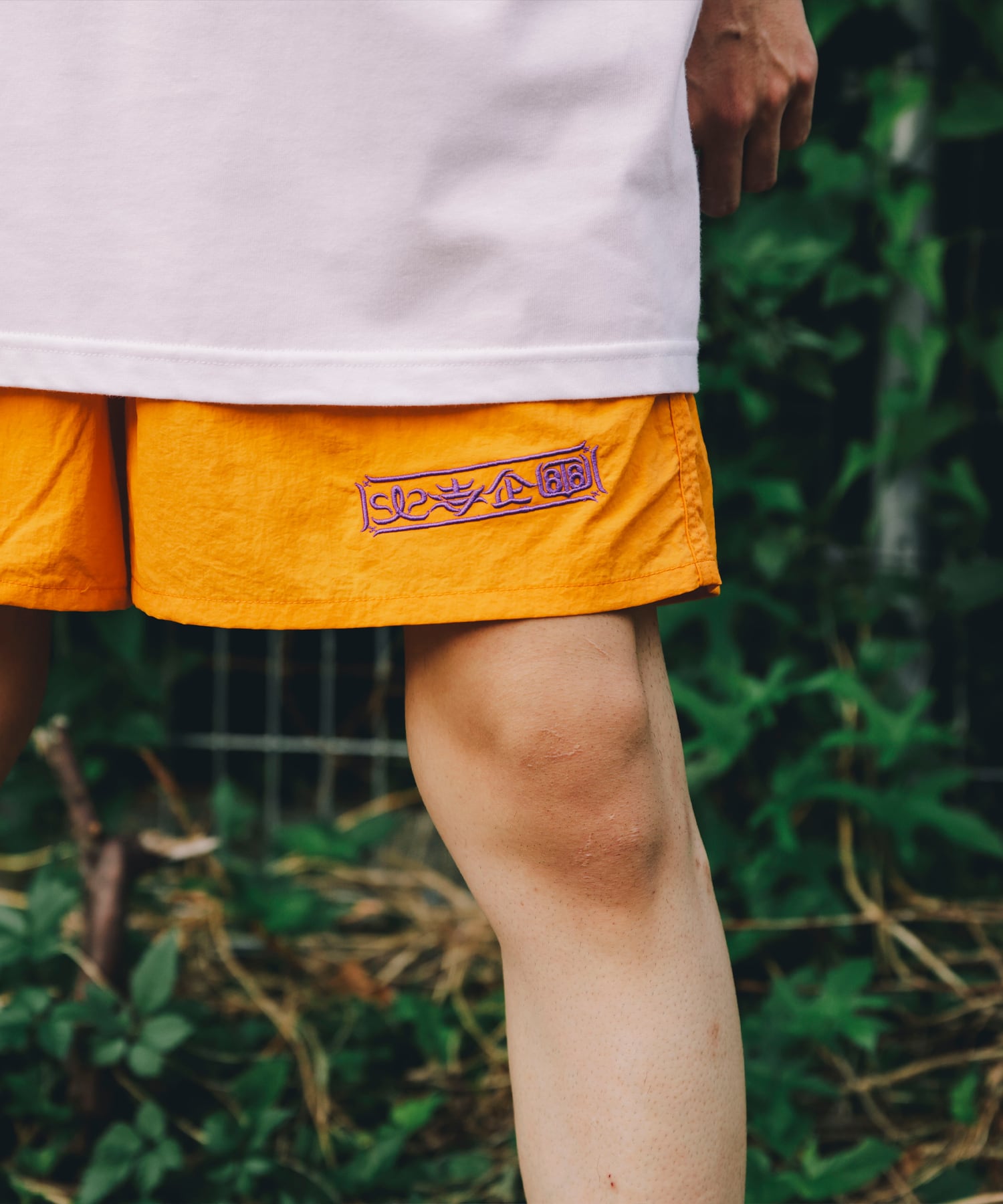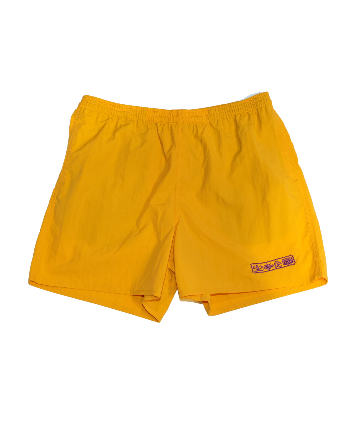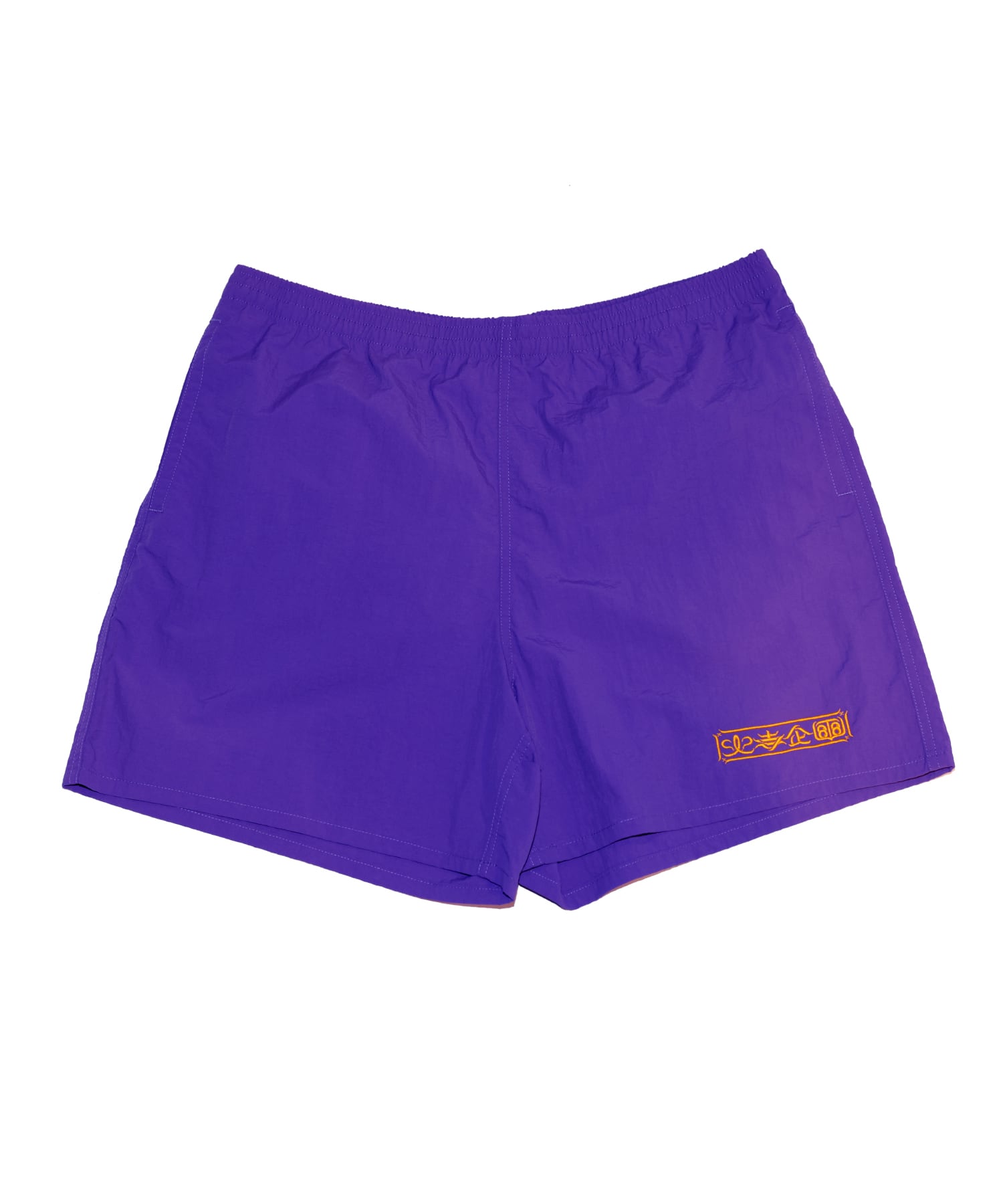 ※M, Lサイズのみの展開となります。 少し張りのあるナイロンショーツの裾に火寺企画の刺繍を施したデザインです。 ユニセックスに穿けるショーツです。 ウエストは平ゴムが入り、ドローコードが付きます。 サイドとヒップポケットの内側にメッシュ生地を採用しています。 サイズ : M / L(cm) 総丈:40.5 / 41.5 ウエスト:79~ / 85~ 股下:12 / 12 素材:ナイロン100%